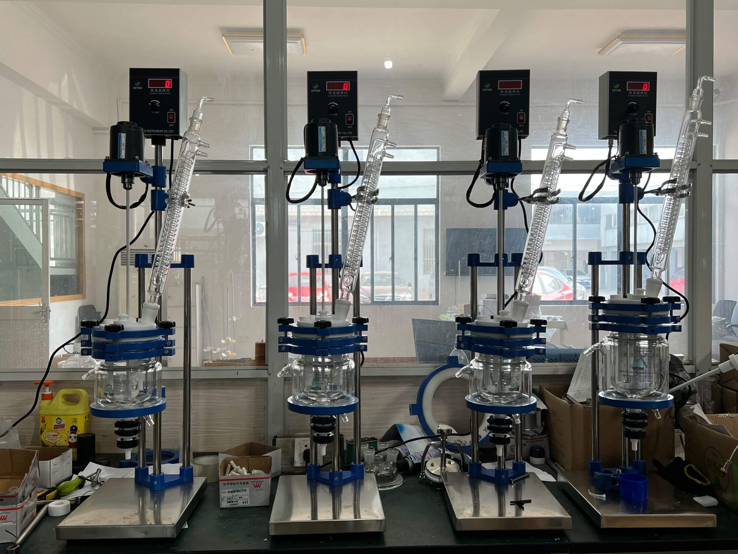 以下的圖片是TOPTION玻璃反應釜部分的出貨圖片和倉庫圖片,供您參考。對於標準型號,我們有充足的庫存,可以在3天內快速交貨。對於客製化反應器,我們也有能力快速投入生產,以確保及時,按時交貨。使用TOPTION作為你的優勢。
